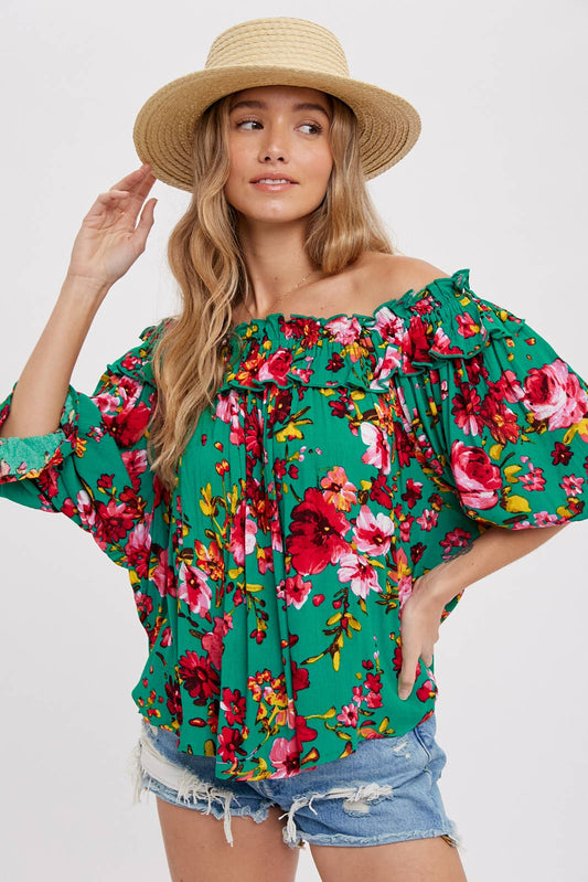 Sassy Floral Mock Neck Mesh Long Sleeve Blouse